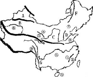 (1)地形区A是 ,B是 ,分界山脉是 ;地形区C是 ,D是 ,分界山脉是 。图中大兴安岭东西两侧的地形区E是 ,F是 。