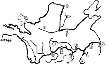 (2)图中水电站(或水利工程)名称:D为 ,位于 (省区);F为 ,位于 (省区);E为 ,位于湖北省境内西陵峡中段。