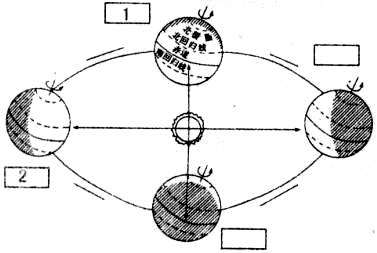(2)位置1和2分别表示的节气,1________________,2________________,从位置2到下一个节气北半球昼夜长短将如何变化________________________________。
