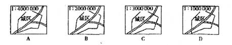 1.下面四幅图中城区面积最大的是 ( )