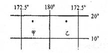 C.乙地位于西经度范围内,在东半球 D.乙地位于南半球,有太阳直射现象