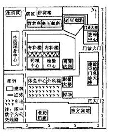 21.一位老奶奶到医院去看病,不熟悉院内情况,也看不懂医院平面图,请你帮帮忙。(5分)