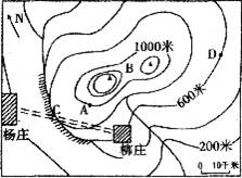 (1)登山途中,小明和同学们来到两座山峰之间,发现前后是一延伸很远的山谷。他们所处地点可能在图中A、B、C、D中的哪一点?