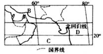 (2)上图北回归线经过地区中,亚洲和非洲共有的气候类型主要是 (填字母)。