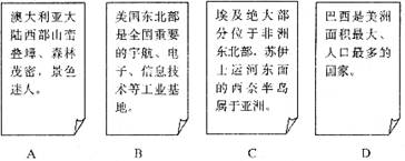 6.下列四张卡片中的内容.哪一张是正确的