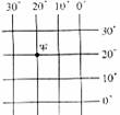 A.西经20°,北纬20° B.东经20°,北纬20°