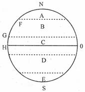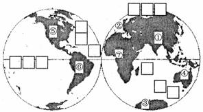 2.读下图“地球上的五带图”填空图中的字所代表的地理事物(11分)