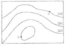 A.a在b的西北方 B.a、b之间的相对高度是400米