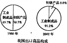 D.1980年我国出口商品构成中,工业制成品出口比重占主要地位