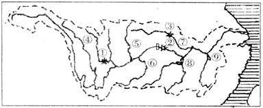 水利枢纽工程②__________,支流⑦__________,湖泊⑧__________。