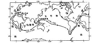3.从航行线路图中可看出,船队从南半球跨过赤道进入北半球的次数是