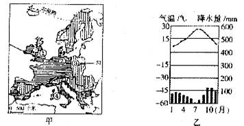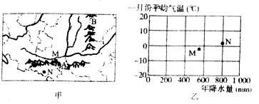 (3)甲图中M、N两城市的气温、降水状况如乙图所示,则他们所属的气候类型分别是 、 。