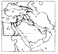 (2)用H标出霍尔木兹海峡的大致位置