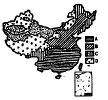 下图中A、B、C、D分别表示的是我国四种农业生产地区,读图完成14-15题:
