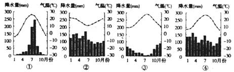 (3)下为第26-29届夏季奥运会举办城市亚特兰大、悉尼、雅典和北京的气候资料统计图。其中代表雅典的是 (填序号)。(1分)