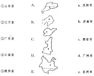 26.将下列省级行政区轮廓与相应的名称、行政中心用直线连接起来。(5分)