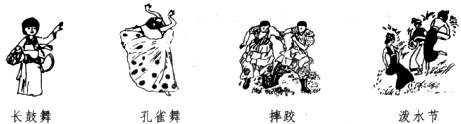 27.看下列图画,分别写出各是哪个少数民族的传统节目。(4分)