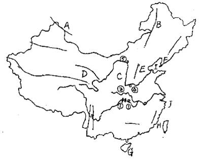 (2) 铁路的开通,结束了西藏无铁路的历史, 铁路则承担着晋煤外运的重任,联系济南和青岛的铁路是 线。C是 工业基地,E是 工业基地,位于该基地的核电站是 核电站,D工业基地发展高新技术产业的有利条件是 。