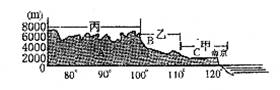 2、下图是依据大致沿北纬32°线所绘制的中国地形剖面图,完成下列问题。(8分)