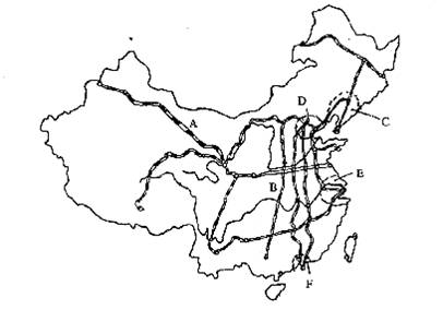 5、读中国铁路干线及主要工业基地分布图,回答问题。(9分)