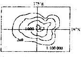 下图为一火山岛等高线(单位:米)示意图,读图回答1-2题。