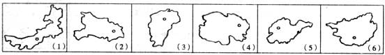 (1)根据图中(1)-(6)的轮廓形状特征,将其所代表的一级行政区划名称、行政中心填写在表格中。