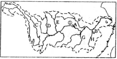 (2)该河上游流经我国地势第_________、_________阶梯交界处,河水湍急,是该河水能资源最集中的地区。