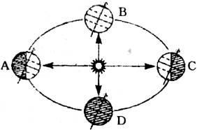 (3)当地球位于A位置时,你学校所在地的昼夜长短情况怎样?