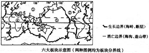 (2)六大板块中几乎完全为大洋板块的是__________ 板块,澳大利亚大陆位于_________板块。(皆填板块名称)