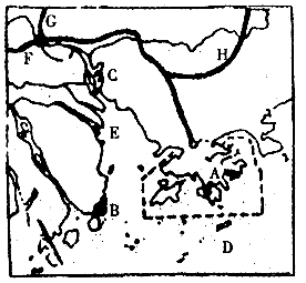 (1)香港和澳门地处珠江口下游人海口的东西两侧,其中位于东侧的是 (填代号),位于西侧的是 (填代号)