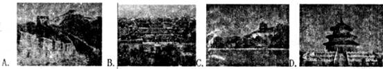 A.长城 B.周口店猿人遗址 C.王府建筑 D.颐和园