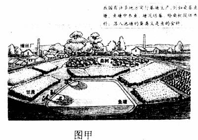 (1)图甲中的生产模式主要分布在乙图中的 省(填代号);这种生产方式的好处是 。