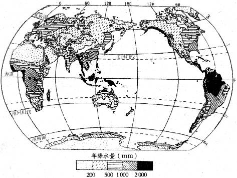 (1)赤道地区年平均降水量为________mm以上,两极地区年降水量一般在_____________mm以下。