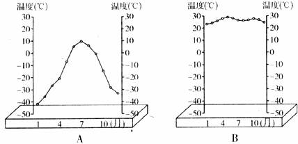 (2)B地各月平均气温都在__________℃与_________℃之间,因此推测处于___________带;与A地相比,B地的年较差________。