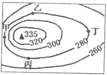 C.甲、乙、丙、丁四处的海拔都是280米 D.甲处海拔最高,丁处海拔最低