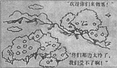 26.除纬度因素外,加剧图中对话双方气温差异的直接因素是