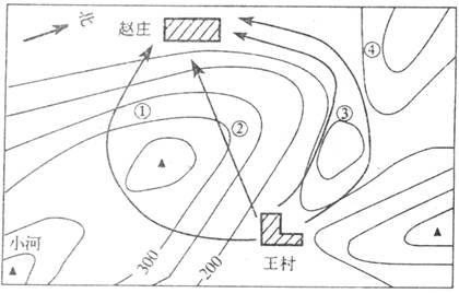 (1)仅从地形方面考虑,从王村到赵庄的四条路线中,最容易到达的是_________(填数码)。
