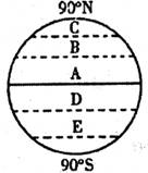 (2)在图中填出五带的名称。