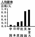 (2)从下面两幅图可以看出,我国人均耕地面积低于 、 、 、