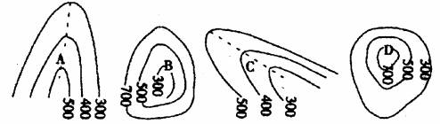 C.山脊、山顶、山谷、盆地 D.山谷、山顶、山脊、盆地