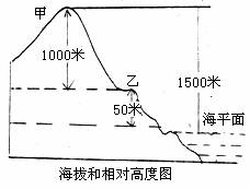 甲山的海拔是( )米,相对高度是( )米; 乙山的海拔是( )米