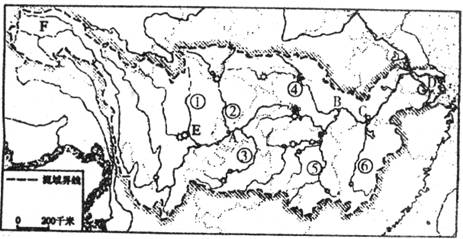 (1)图中粗弧线是第________级阶梯与第________级阶梯的分界线。⑥位于第________级阶梯,⑦位于第________级阶梯。