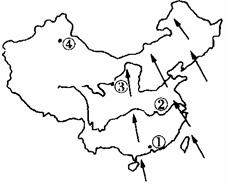 (3)在①②③④四城市中,降水量由多到少的排列是 ,说明我国降水的分布趋势是 。