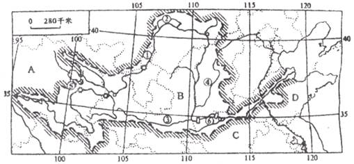 (2)黄河发源于A是___________高原。中游流经的B是__________高原。水土流失严重。因此,治理黄河的关键是中游的治理,其根本措施是_____________________。