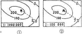 2.关于图中①、②两幅等高线地形图的说法,正确的是