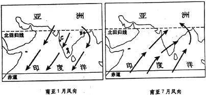 5.印度的降水变化主要受季风影响。读下面南亚1、7月风向图,完成下列问题。(14分)