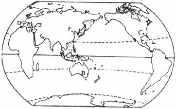 (1)图中字母分别代表近六届夏季奥运会的举办地:首尔、巴塞罗那、亚特兰大、悉尼、雅典和北京。其中城市B是________ ,城市F是________。