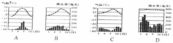 (3)下图是第26-29届夏季奥运会举办城市亚特兰大、悉尼、雅典和北京的气候统计图,其中符合北京的是________ (填字母)。