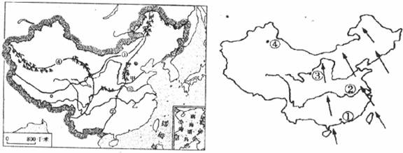 (3)图中表示我国东部正盛行________(冬季或夏季)风,气流特点________(寒冷干燥或温暖湿润)。