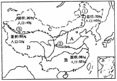 (1)①为________(山脉),D区的范围大致与________高原的范同吻合。